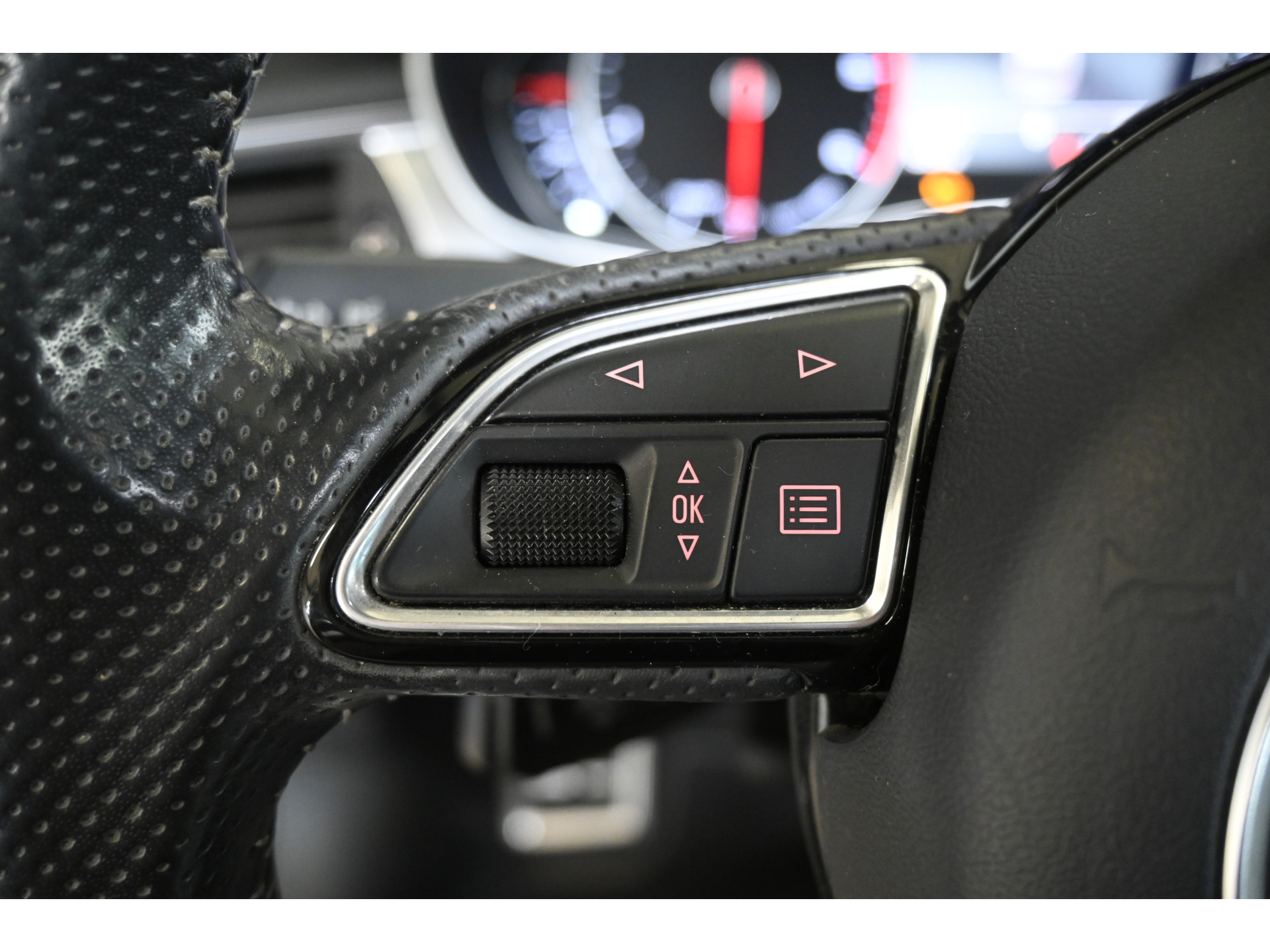 - Sportstuurwiel, driespaaks multifunctioneel in leder